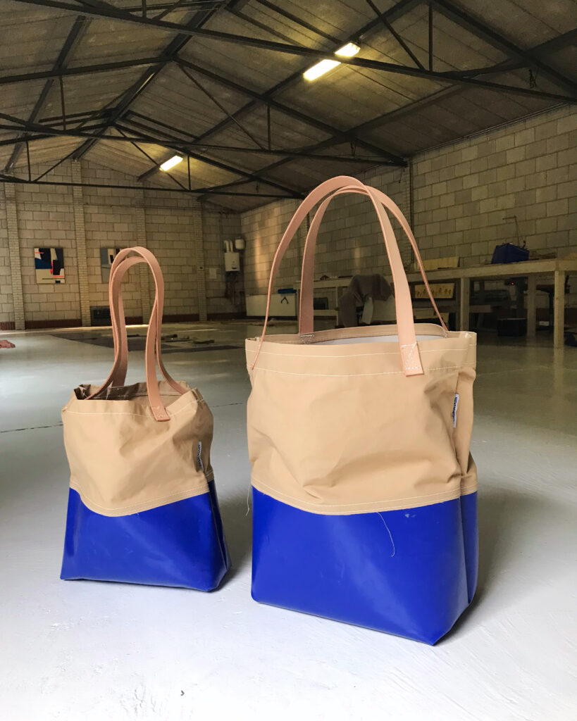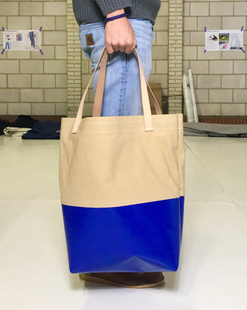Ontworpen en gemaakt van delen viskraam zeil, De Waard tentdoek en met hengsels van tuigleer .