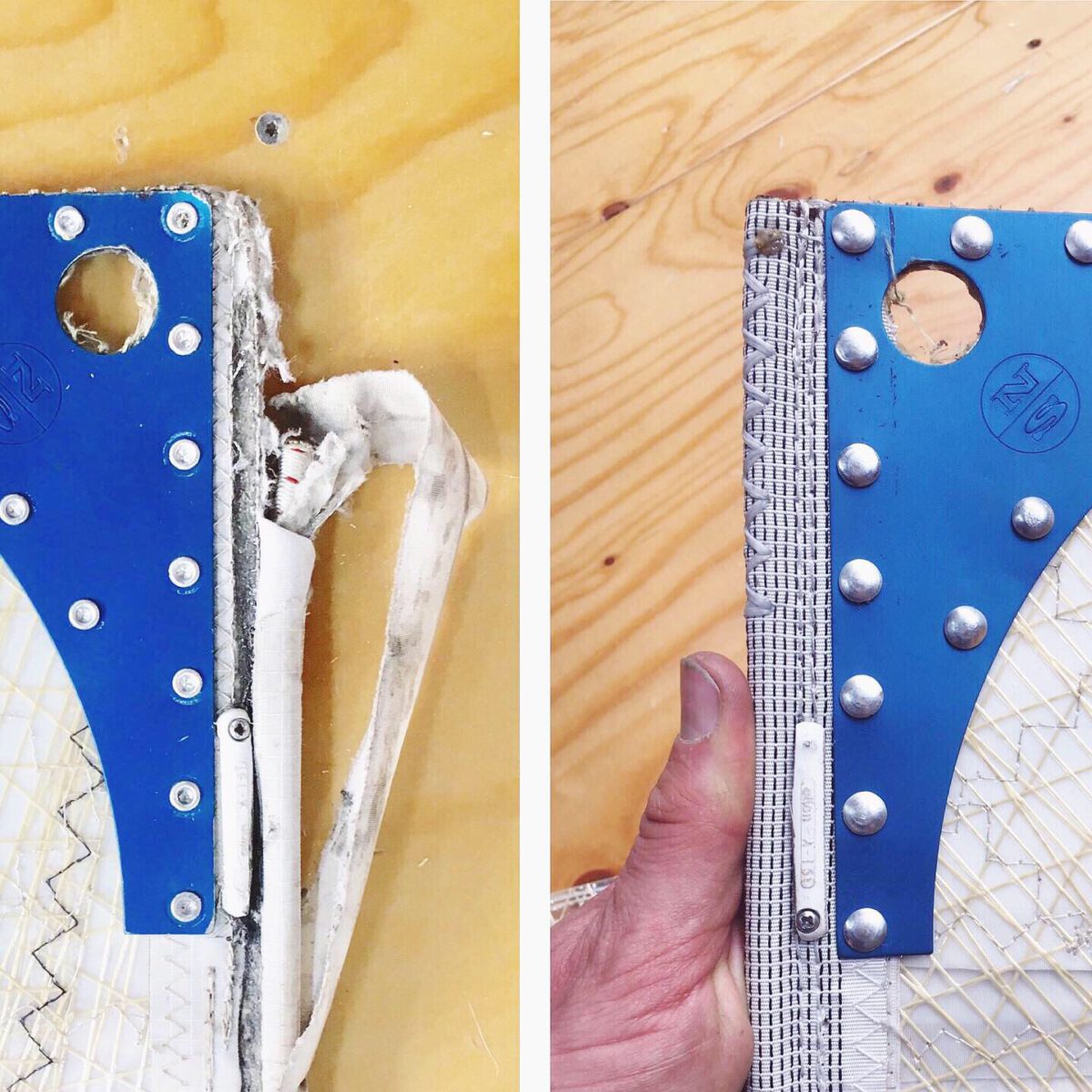 Voor dit project vroeg Strandtent de Pit me of ik van één kapotte strechtent, twee hernieuwde tenten kon maken.