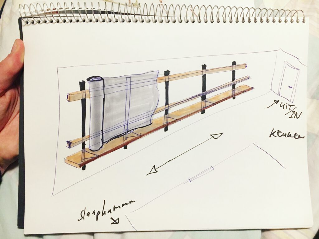 Foto van een studio aan het water op Borneo Eiland te Amsterdam waarvan ik het interieur en het meubilair ontworpen en op maat gemaakt heb.